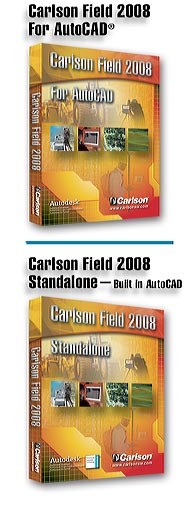 Carlson Field 2008 is available in two forms: Inside AutoCAD® or AutoCAD® Inside. Carlson Field, formerly call Tsunami, is available as a standalone program or as a modular program of Carlson 2008. The two forms of this product are called Carlson Field 2008 for AutoCAD and Carlson Field 2008 Standalone.